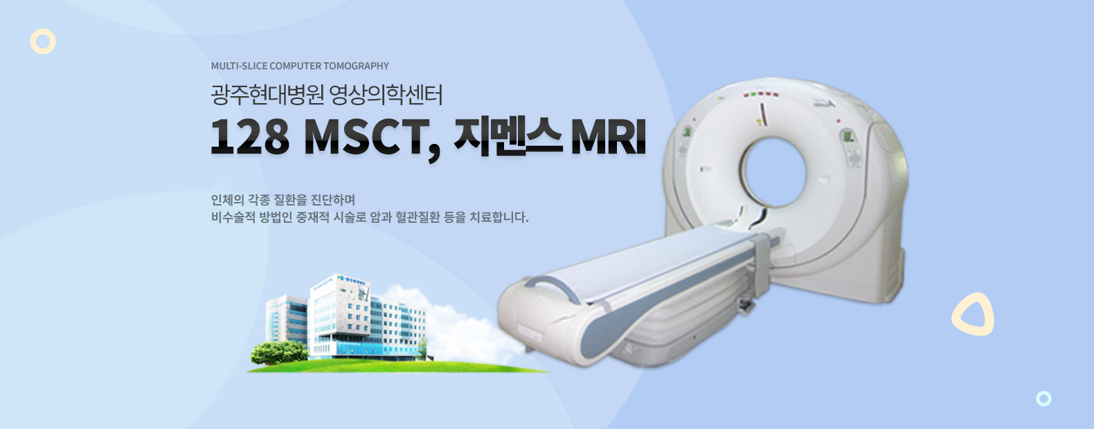 ¿µ»óÁø´Ü Àåºñ¸¦ ÀÌ¿ëÇÏ¿© ÀÎüÀÇ °¢Á¾ ÁúȯÀ» Áø´ÜÇÏ¸ç ºñ¼ö¼úÀû ¹æ¹ýÀÎ ÁßÀçÀû ½Ã¼ú·Î ¾Ï°ú Ç÷°üÁúȯ µîÀ» Ä¡·áÇÕ´Ï´Ù.